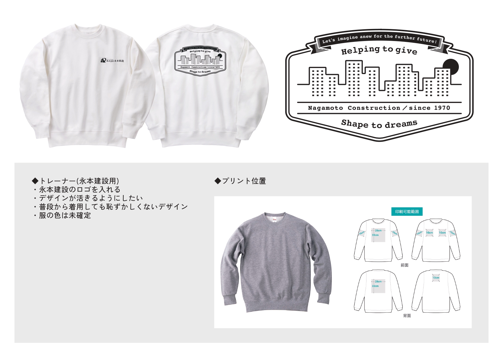 私服としても違和感のない会社用ポロシャツを制作。バックに建設会社らしい街並みの大胆なプリントを配置し、オリジナリティあふれるデザインに仕上げました。